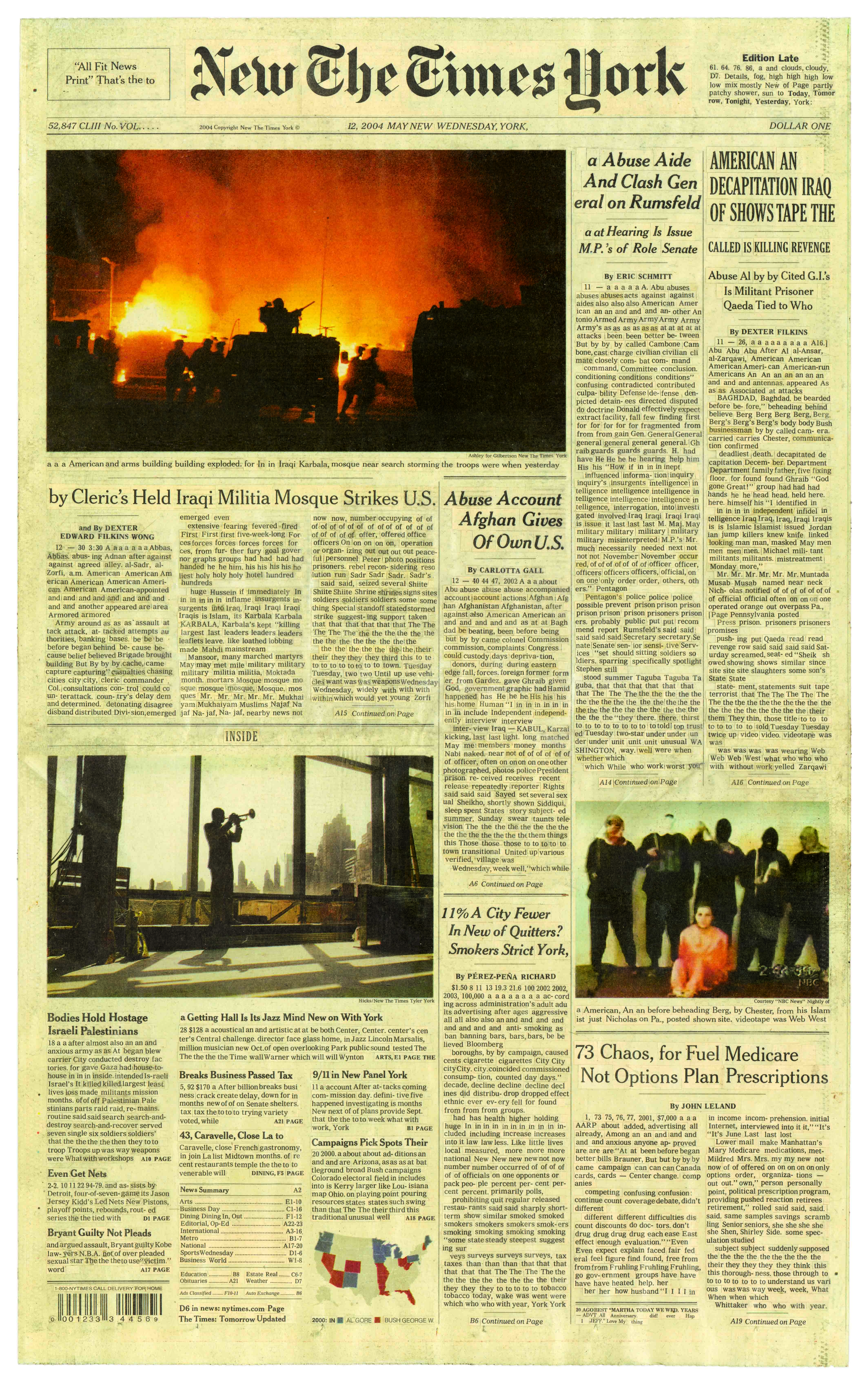is a collage made from the front page of The New York Times with all text re-arranged alphabetically.